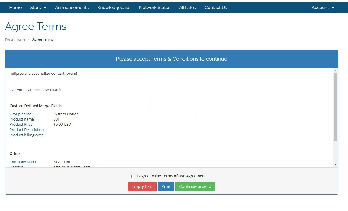 2.open frontend page www.****/index.php?m=agreeterms have error like :