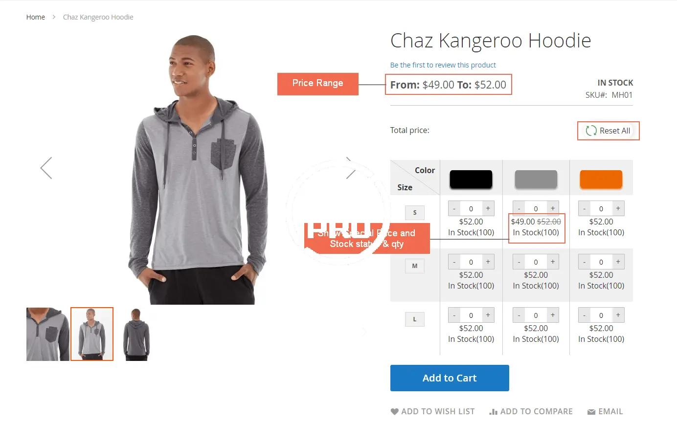 - Support with default swatch function with clickable options