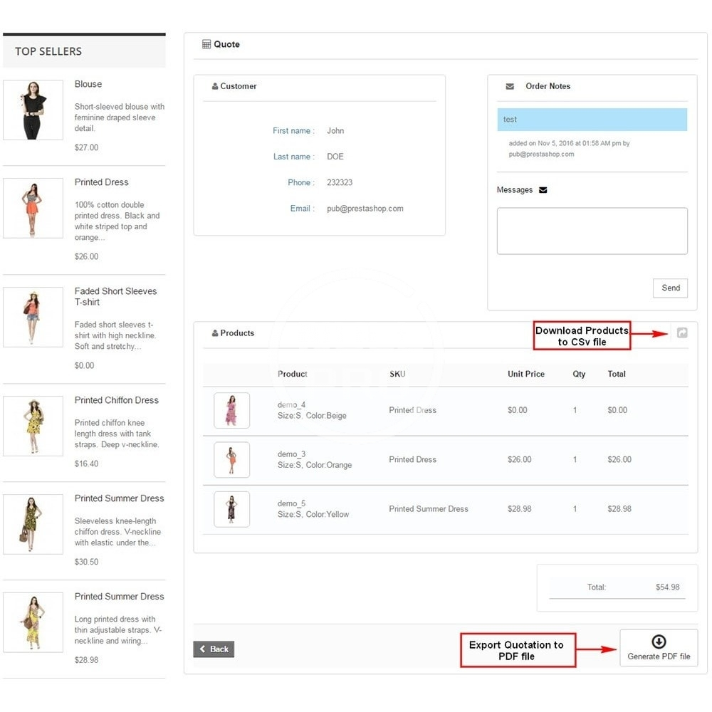 • Unlimited quantity product, combination, attributes for add to Quote List