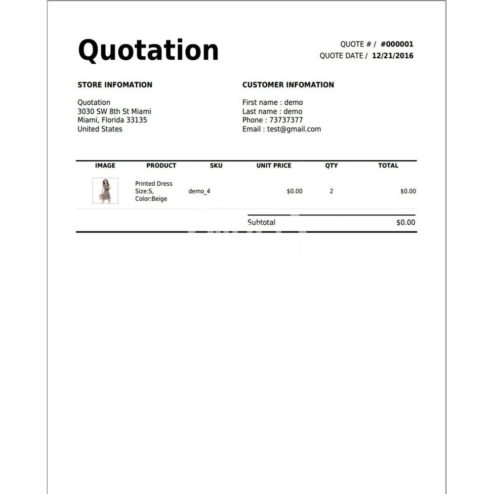 Ask a Quote, create/edit (from Front or Backend), send, and manage Quotes