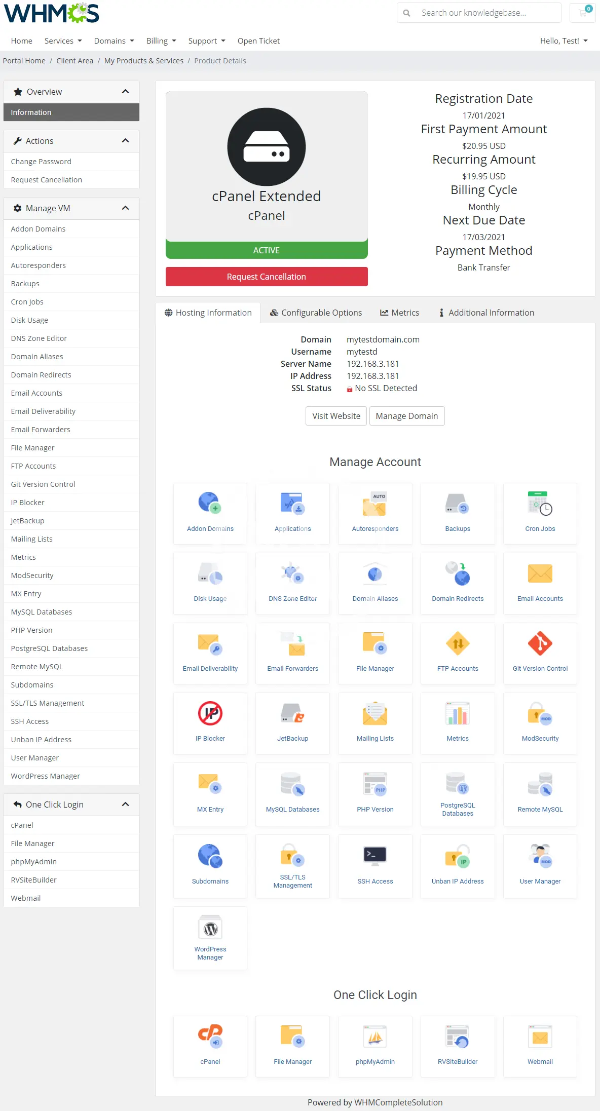 The time-saving appeal of cPanel Extended For WHMCS lies in allowing you to set up ready-made products in your system and configure them in the exact same way as your cPanel Packages. You will precisely tailor the scope of tools available to your clients, as well as limit the resources any single of them can consume with CloudLinux. The close integration with WordPress Manager For WHMCS is a noteworthy addition, because with it, your customers will be able to perform all sorts of actions on their WordPress instances and plugins straight from within the account management panel in the client area.
