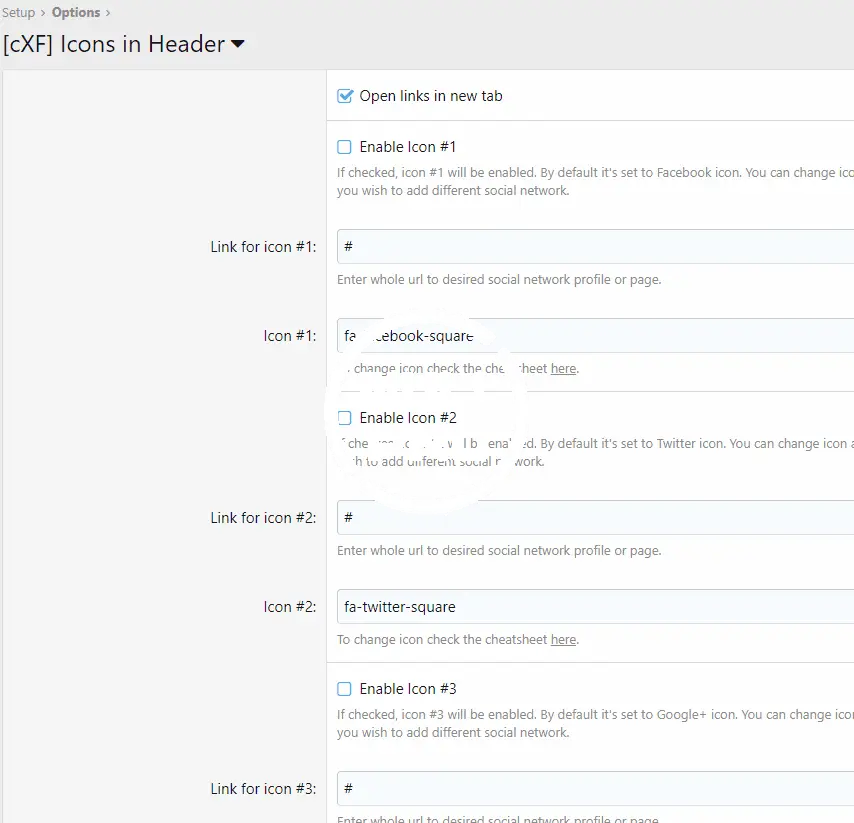 - This add-on will add an option for social icons to show in header.