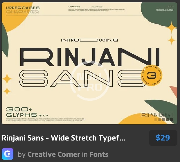 - All-caps sans serif with Wide Stretch contemporary typographic, vintage futuristic art-deco touch.