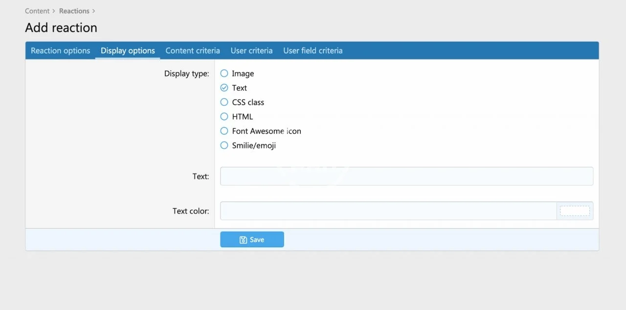- Add text, CSS class, HTML, Font Awesome icons, or smilie/emojis as reactions