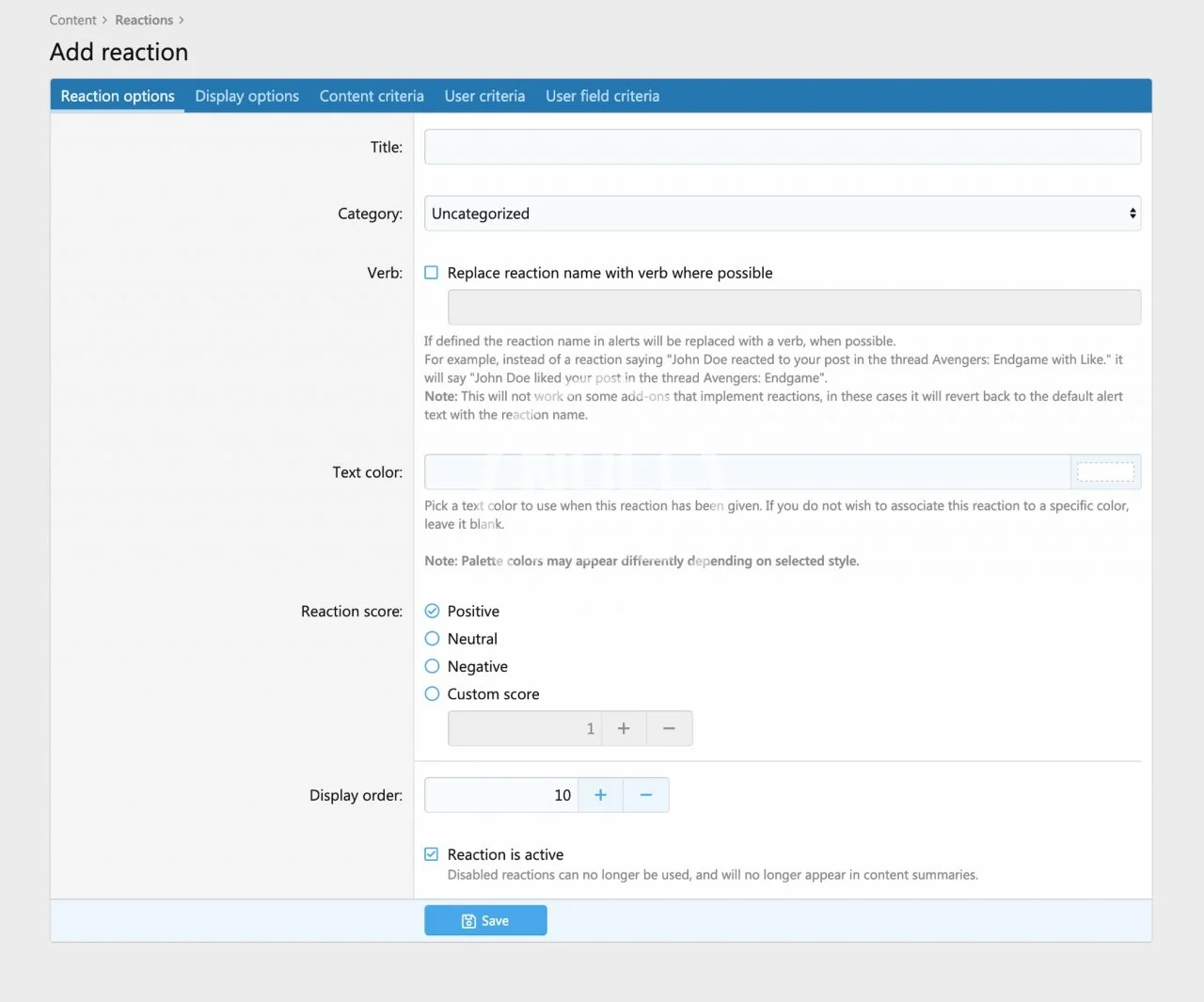 - Set the reaction score threshold