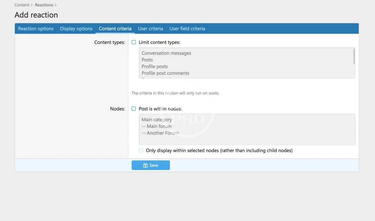 - Utilize user criteria to choose who can use the reaction